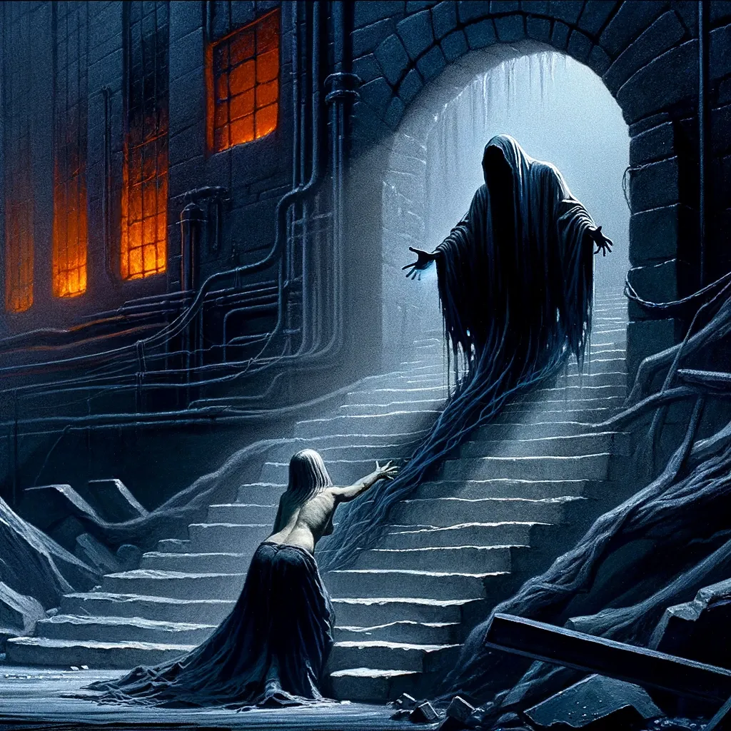 The narrative deepens as Joni introduces "a Black soot of lady release," personifying the drug as a dark figure offering a twisted form of liberation. Her words, "Come with me / I know the way," echo the deceptive allure of addiction, portraying it as a guide into the abyss, leading one "down, down, down the dark ladder." This descent is not just a physical journey but a metaphorical plunge into the depths of despair and dependency.
