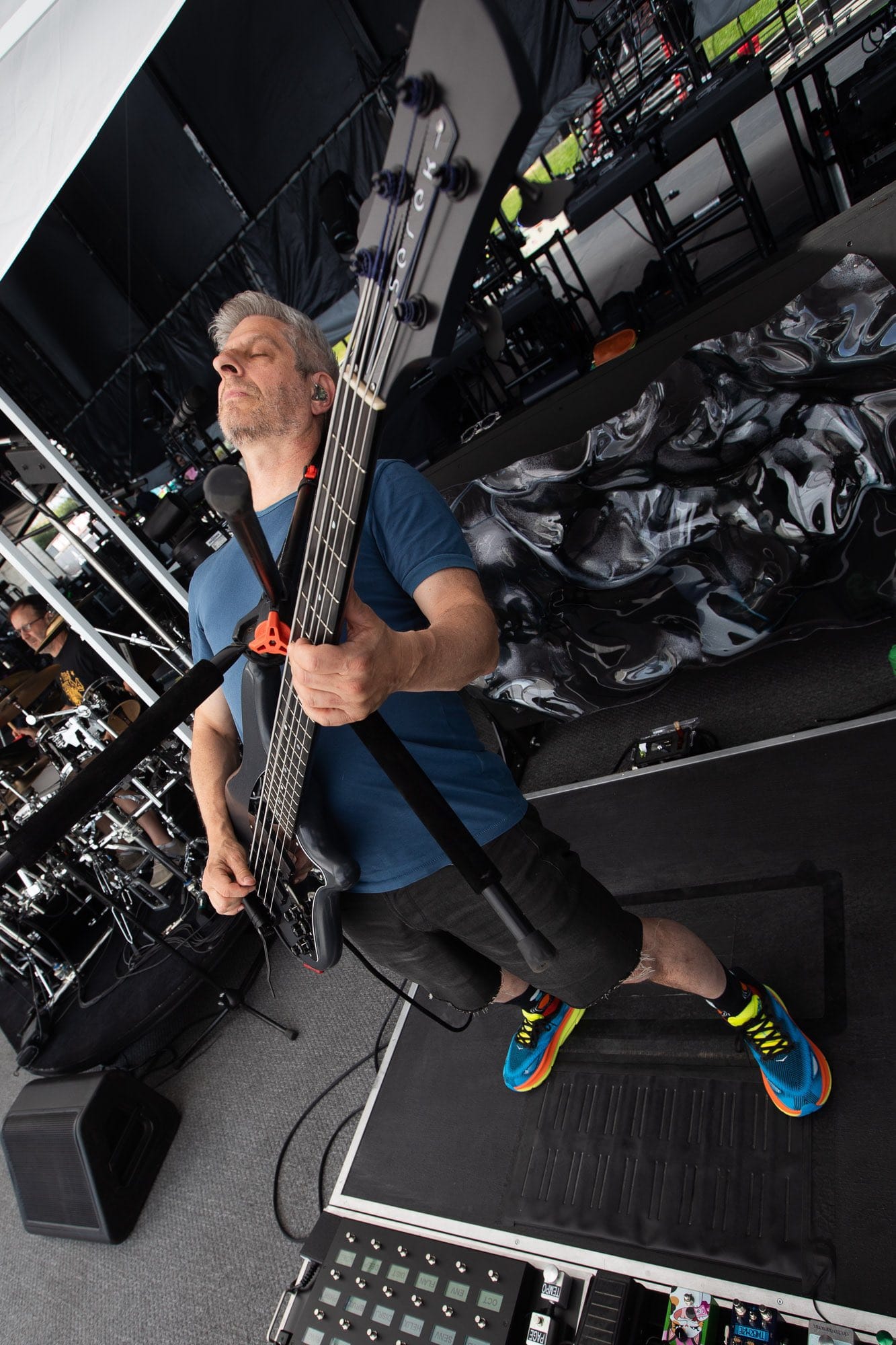 The peak of the Ether Edge jam came with a series of soaring guitar lines from Anastasio, backed by thunderous rolls from Fishman and swelling organ chords from McConnell. Just as it seemed the jam might wind down, Anastasio hit upon the opening riff of Llama, executing a seamless transition that caught both the audience and, seemingly, the rest of the band by surprise.