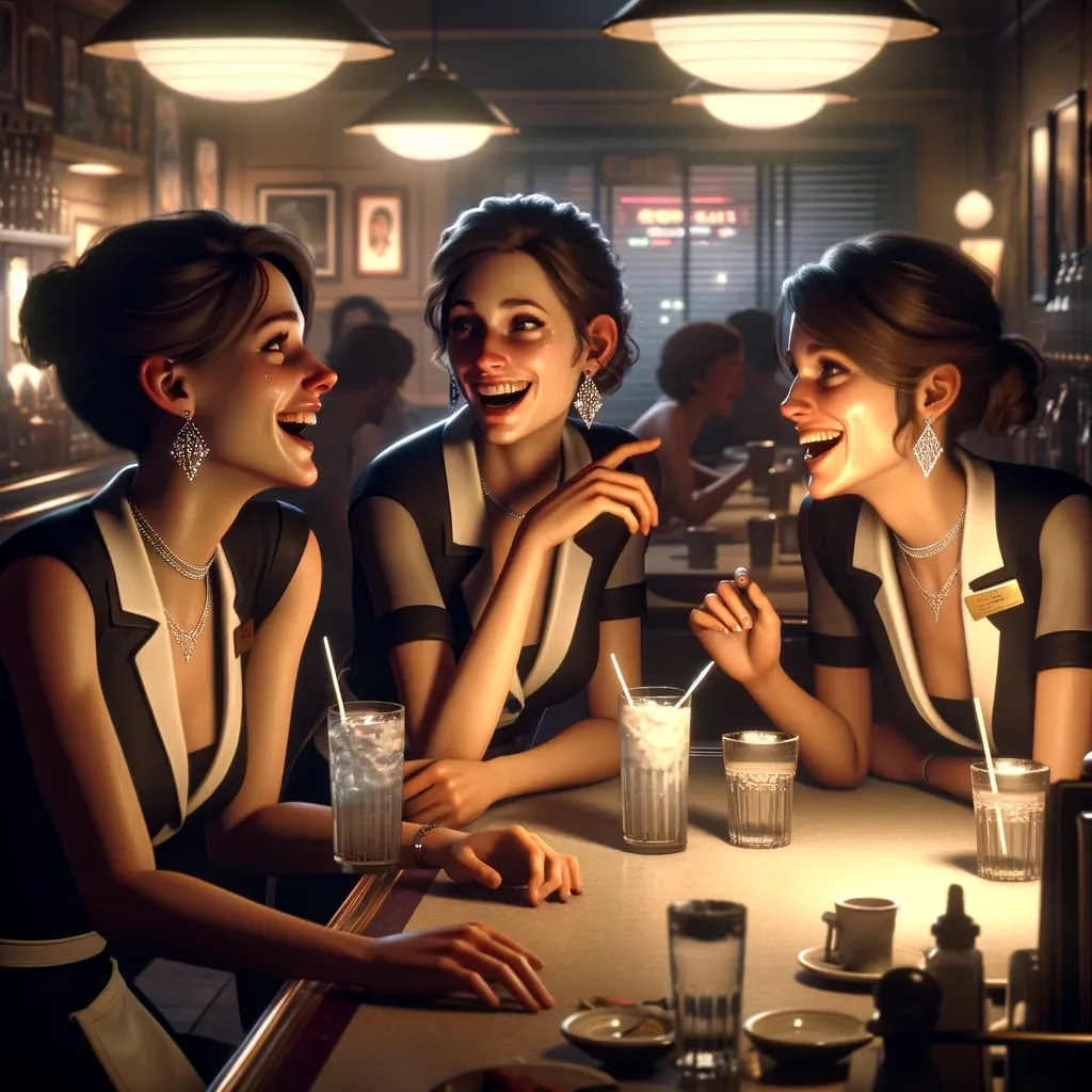 The sense of ease and absence of trouble among the waitresses hints at the deeper connections shared in these moments of casual exchange. Despite the mundane nature of their work, they have found a way to bond over shared interests and experiences, creating a sense of camaraderie that transcends their individual struggles.